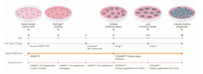 嘉远生物很高兴向各位老师宣布STEMCELL TECHNOLOGIES的第一个肾脏产品:STEMdif 肾脏类器官试剂盒。它是一个完整的、无血清的细胞培养基系统,支持从人多能干细胞(hPSC)在一个简单的两步分化方案中高效和可重复地诱导生成肾脏类器官。